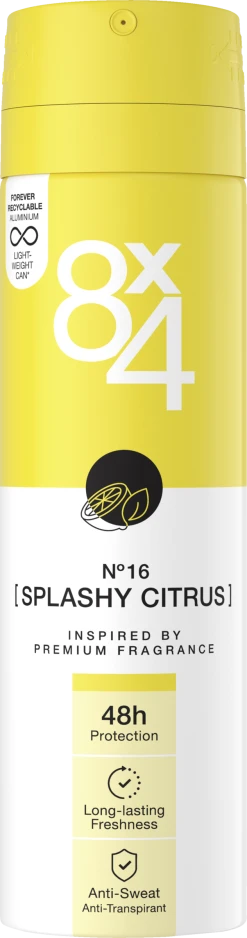 Splashy Citrus strotzt nur so vor positiven Vibes! Der frische Zitrusduft ist so spritzig wie das Gelb auf der Dose und die energetischen Duftnoten wie Ingwer und grüner Tee geben dir Power für den ganzen Tag. Egal, ob du etwas Neues ausprobieren oder deine Energy in deine Herzensprojekte stecken möchtest – Splashy Citrus ist in allen Lebenslagen an deiner Seite und genauso fresh wie du! Und zwar mit zuverlässigem 48h Anti-Transpirant-Schutz. Der ist aber auch alles, was an N°16 “anti” ist!