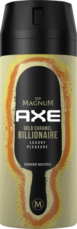 Welcome to the Future, it smells amazing! Wer sagt, dass man ein Billionaire sein muss, um wie einer zu riechen? Frisch bleiben und unwiderstehlich riechen mit dem AXE Limited Edition Gold Caramel Billionaire Deodorant für Männer. Dieser Duft entstand in Zusammenarbeit mit Magnum und kann süchtig machen. Inspiriert von der Magnum Eis Neuheit 2021 wurde ein Bodyspray kreiert, das intensiv und leicht ist. Dieser AXE-Duft wurde für Männer mit Geschmack entwickelt und verleiht einen verführerischen Duft nach Schokolade und Karamell.
