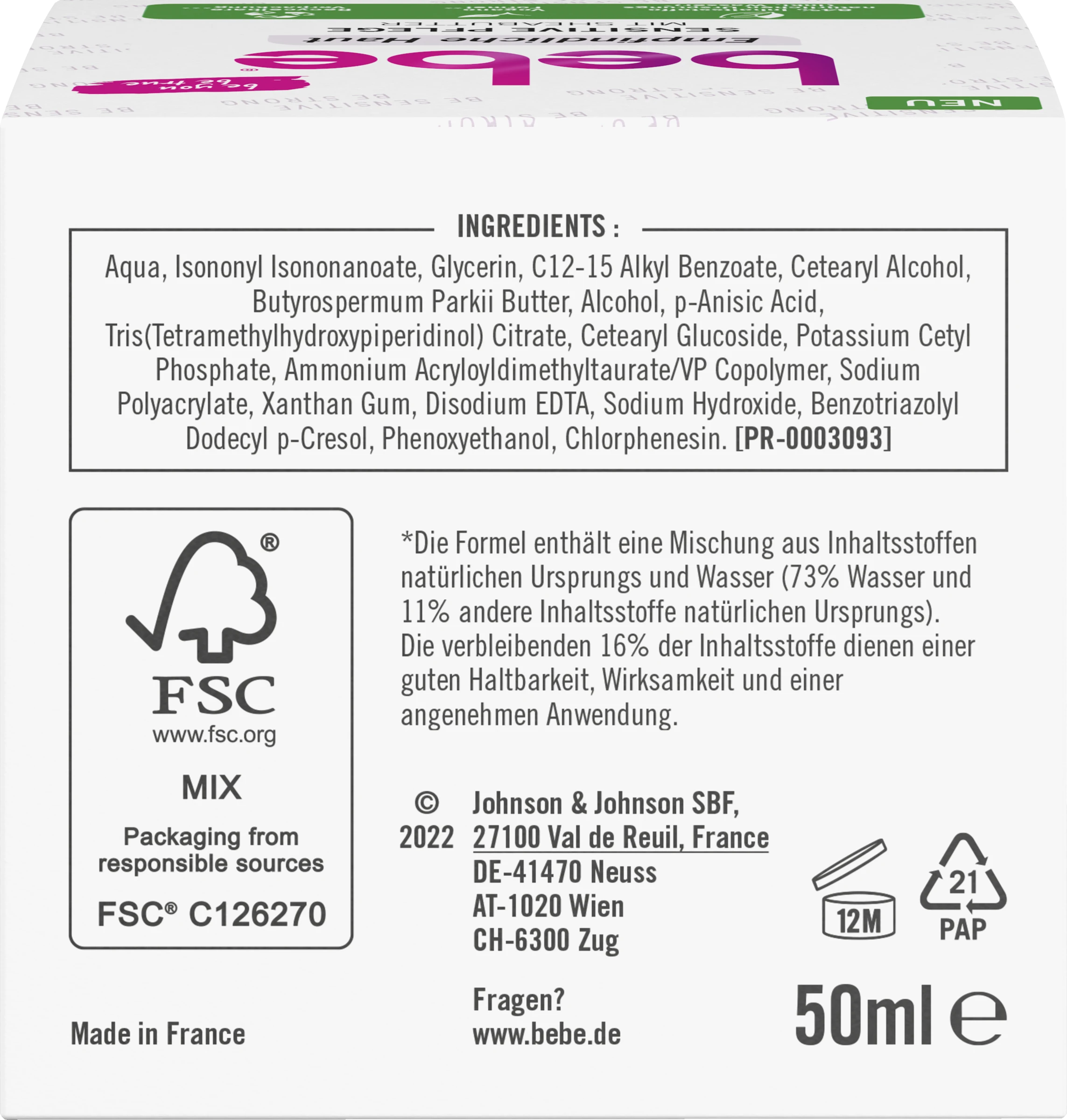 Aqua, Isononyl Isononanoate, Glycerin, C12-15 Alkyl Benzoate, Cetearyl Alcohol, Butyrospermum Parkii Butter, Alcohol, p-Anisic Acid, Tris(Tetramethylhydroxypiperidinol) Citrate, Cetearyl Glucoside, Potassium Cetyl Phosphate, Ammonium Acryloyldimethyltaurate/VP Copolymer, Sodium Polyacrylate, Xanthan Gum, Disodium EDTA, Sodium Hydroxide, Benzotriazolyl Dodecyl p-Cresol, Phenoxyethanol, Chlorphenesin