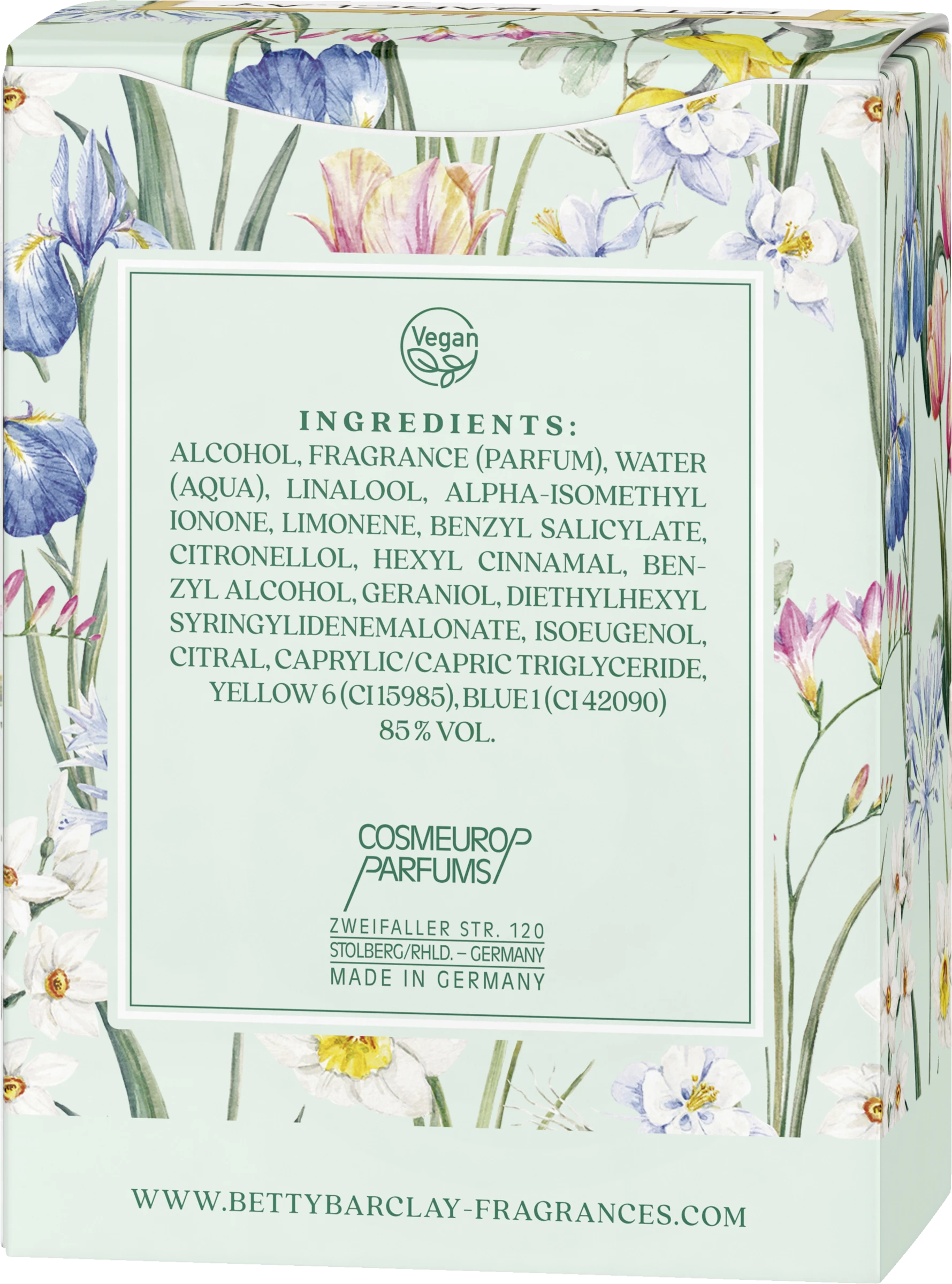 ALCOHOL, FRAGRANCE (PARFUM), WATER (AQUA), LINALOOL, ALPHA-ISOMETHYL IONONE, LIMONENE, BENZYL SALICYLATE, CITRONELLOL, HEXYL CINNAMAL, BENZYL ALCOHOL, GERANIOL, DIETHYLHEXYL SYRINGYLIDENEMALONATE, ISOEUGENOL, CITRAL, CAPRYLIC/CAPRIC TRIGLYCERIDE, YELLOW 6 (CI 15985), BLUE 1 (CI 42090)