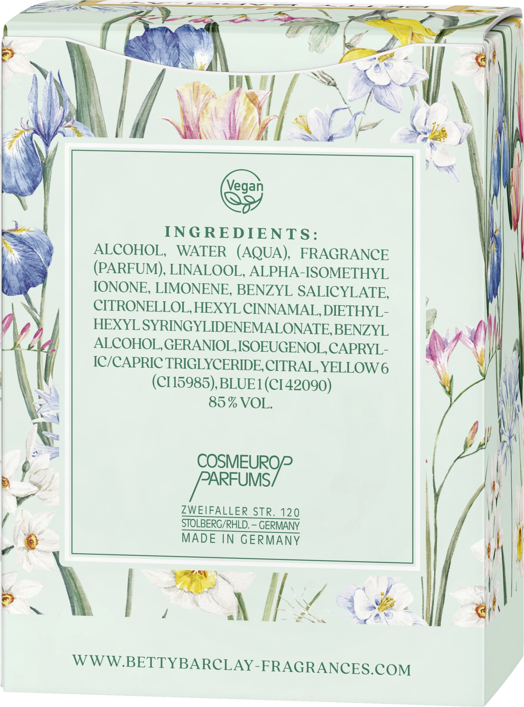ALCOHOL, WATER (AQUA), FRAGRANCE (PARFUM), LINALOOL, ALPHA-ISOMETHYL IONONE, LIMONENE, BENZYL SALICYLATE, CITRONELLOL, HEXYL CINNAMAL, DIETHYLHEXYL SYRINGYLIDENEMALONATE, BENZYL ALCOHOL, GERANIOL, ISOEUGENOL, CAPRYLIC/CAPRIC TRIGLYCERIDE, CITRAL, YELLOW 6 (CI 15985), BLUE 1 (CI 42090)