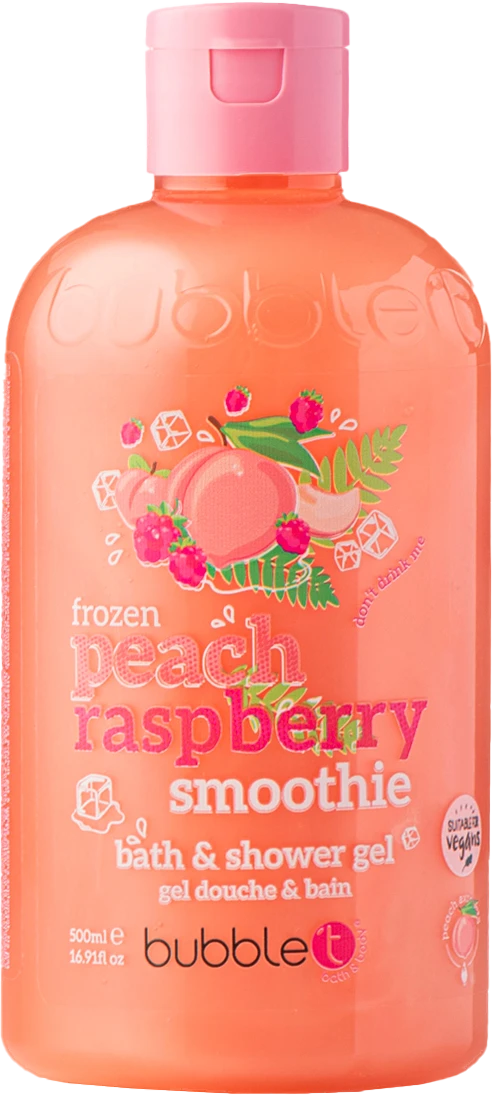 Der belebende Duft von Himbeeren trifft in diesem neuen Bade- und Duschgel auf den süßen Duft von Pfirsichen! Dieses Gel ist perfekt für Smoothie-Liebhaber und enthält Pfirsichextrakt, um Ihren Körper zu pflegen und zu verwöhnen.