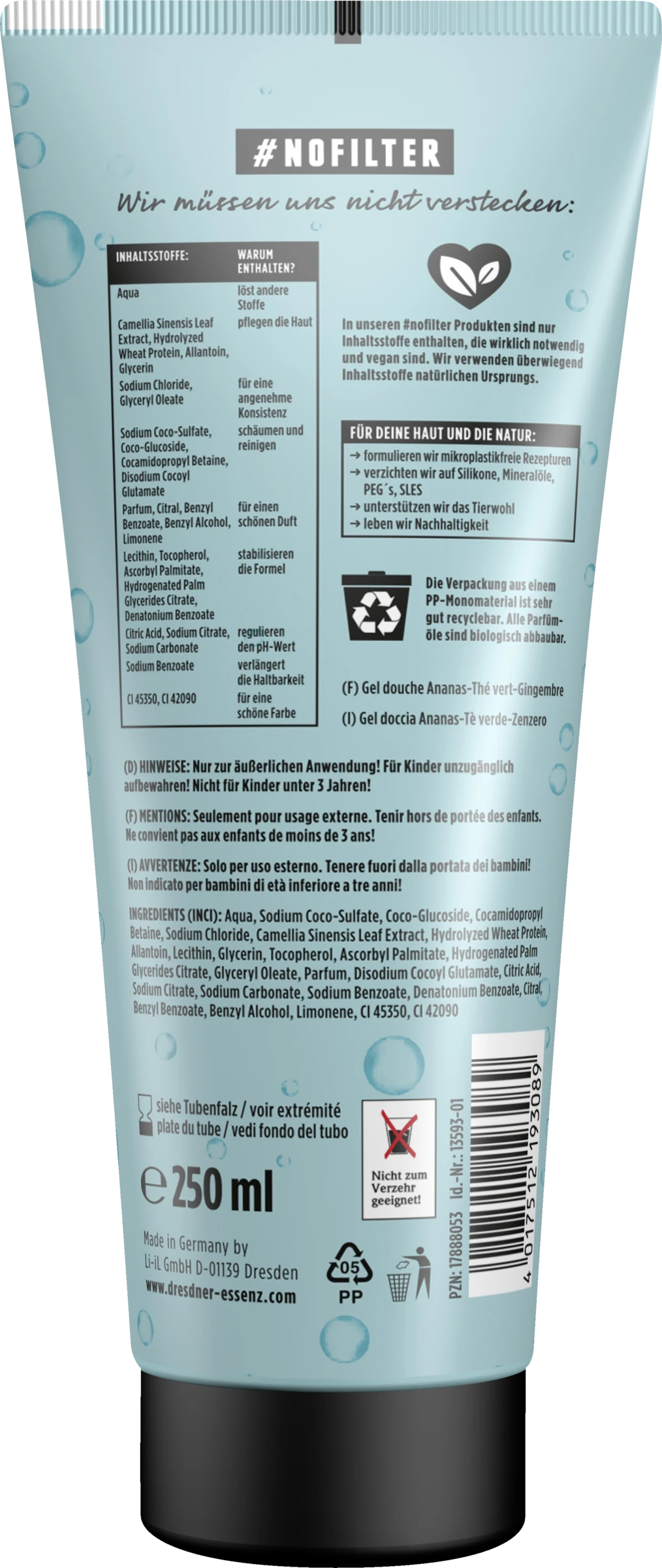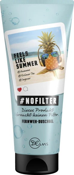 Ich träume mich davon an helle Sommertage. Warme Sonnenstrahlen kitzeln meine Nase und das leise Rauschen des Meeres in der Ferne erfüllt mich mit tiefer Zufriedenheit. Das Feels like Summer Duschgel schickt mich jedes Mal auf eine Duftreise in den Urlaub. #nofilter Produkte müssen sich nicht verstecken: Sie enthalten nur Inhaltsstoffe, die wirklich notwendig und vegan sind.