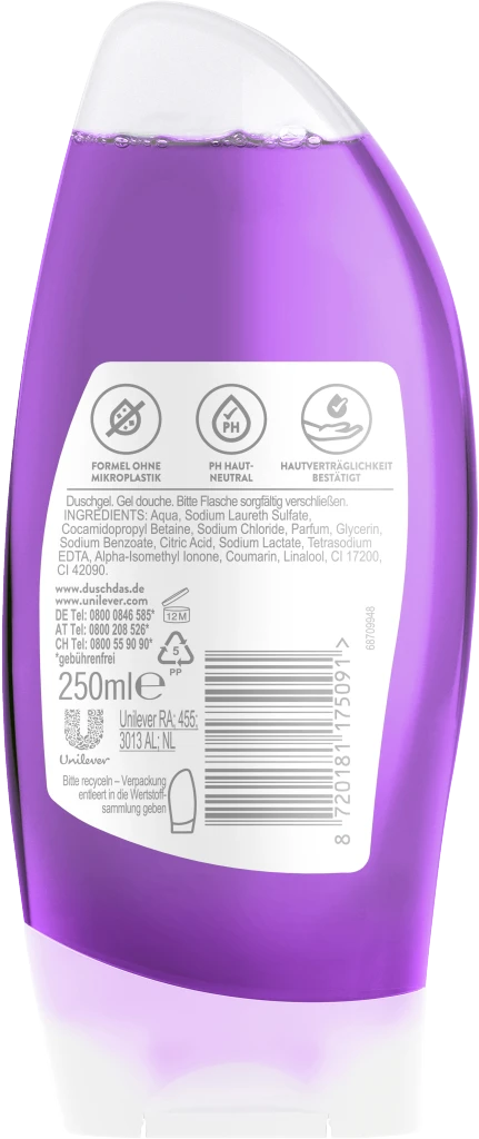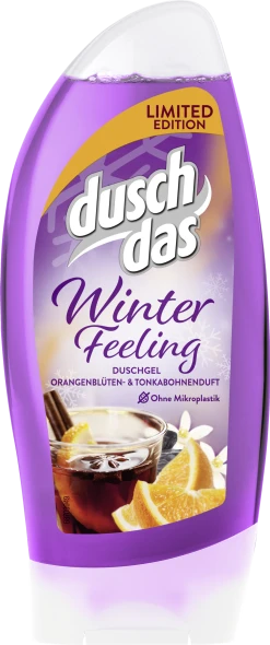 Das duschdas Duschgel Winter Feeling mit wohligem Orangenblütern- und Tonkabohnenduft sorgt für behagliche Stimmung unter die Dusche. Die Limited Edition ist nur kurzzeitig erhältlich und mit seinem Duft lässt das Duschgel die Haut nach der Dusche gut duften und den Verwender entspannt und erfrischt in den Tag starten. Das Duschbad ist in der praktischen 250 ml Flasche erhältlich. Für das ideale Duscherlebnis ist das erfrischende Duschgel leicht dosierbar, lässt sich schnell auf dem Körper aufschäumen und leicht abspülen. Es hinterlässt ein frisches und sauberes Hautgefühl. Das duschdas Duschgel ist pH-hautneutral und somit besonders sanft zur Haut.