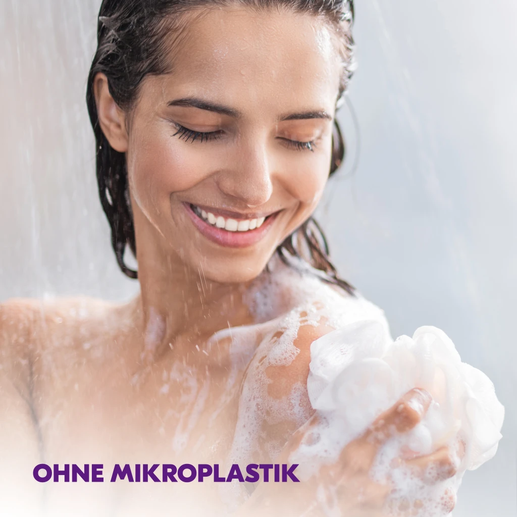 Einfach die trockene Haut unter der Dusche anfeuchten, das Duschgel auf dem Körper verteilen, einmassieren und abspülen.