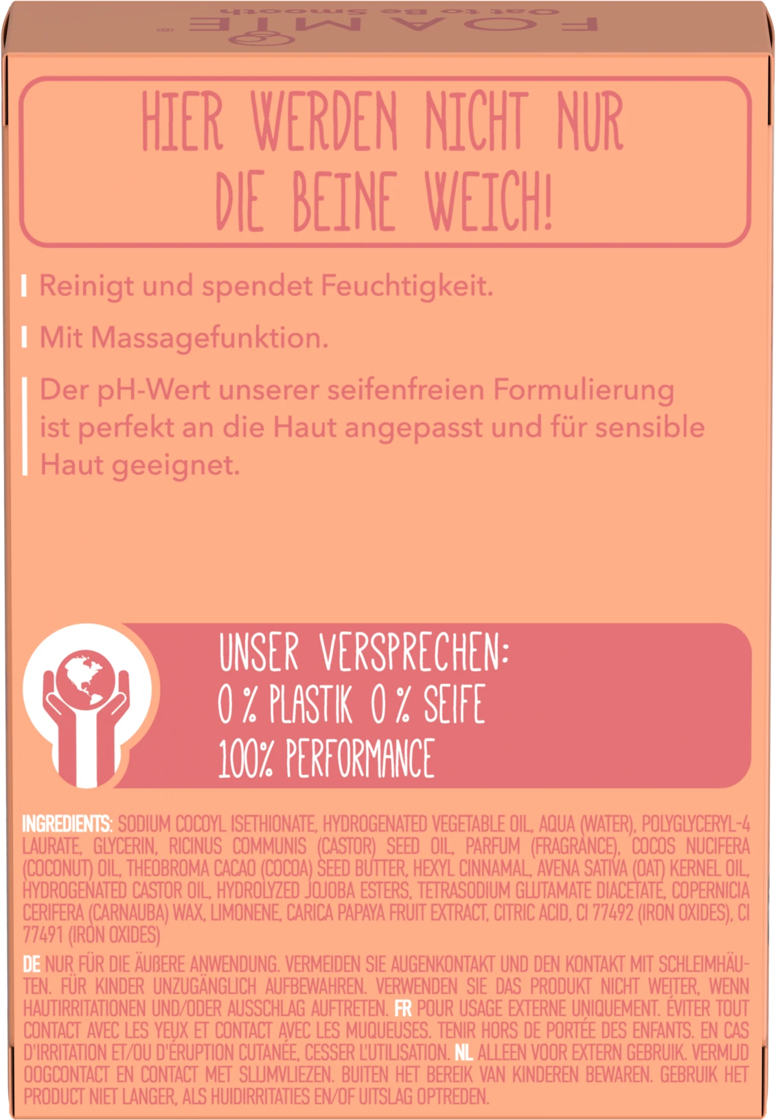 Die Foamie Feste Duschpflege Oat to Be Smooth pflegt den Körper intensiv. Mit Hafermilch und Papaya für eine intensive Pflege! 3 in 1 Feste Duschpflege: Massiert, reinigt und pflegt.