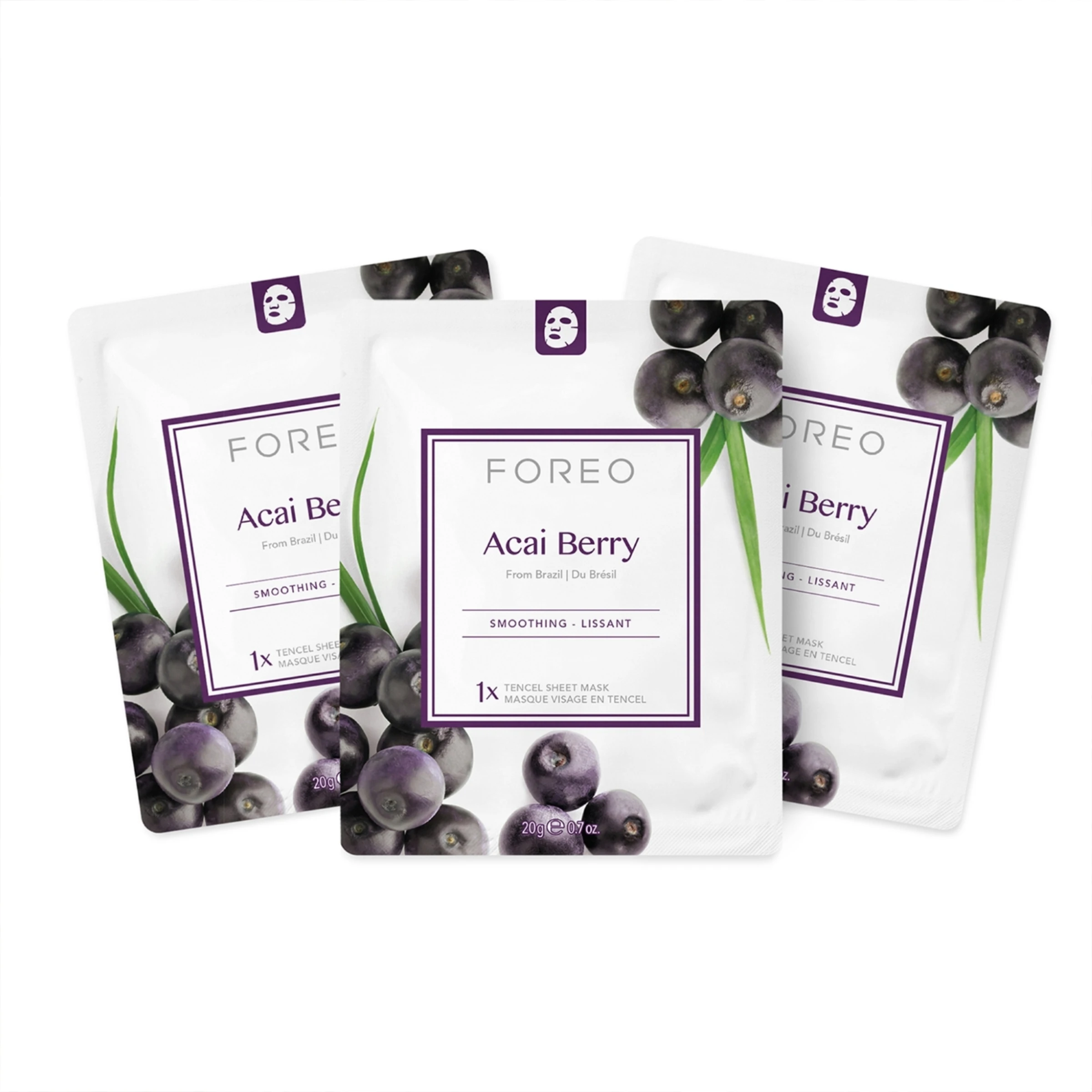 FOREO Acai Berry straffende Sheetmaske für reife Haut – ANTIOXIDATIVE SUPERPOWER FÜR JUGENDLICH PRALLE HAUT.