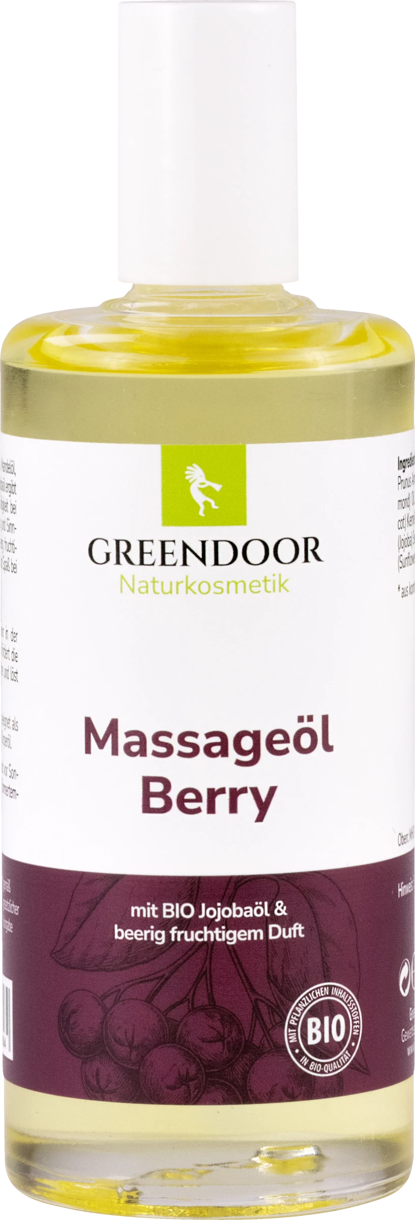 Das GREENDOOR Naturkosmetik Massagöl Berry ist gleichzeitig hervorragend als hochwertiges veganes Körperöl einsetzbar.