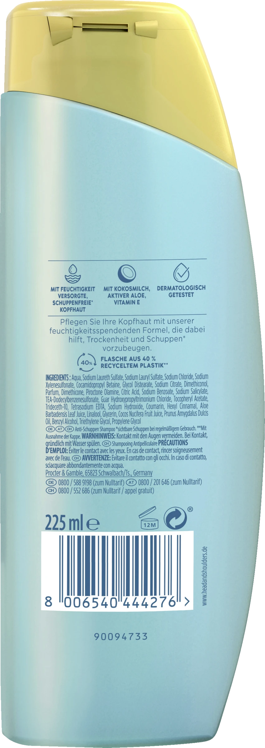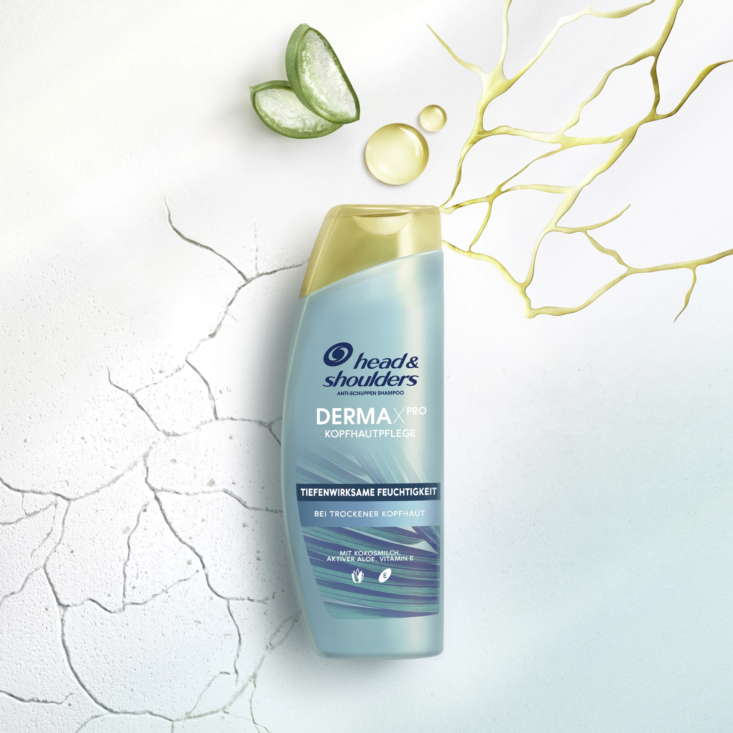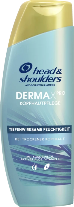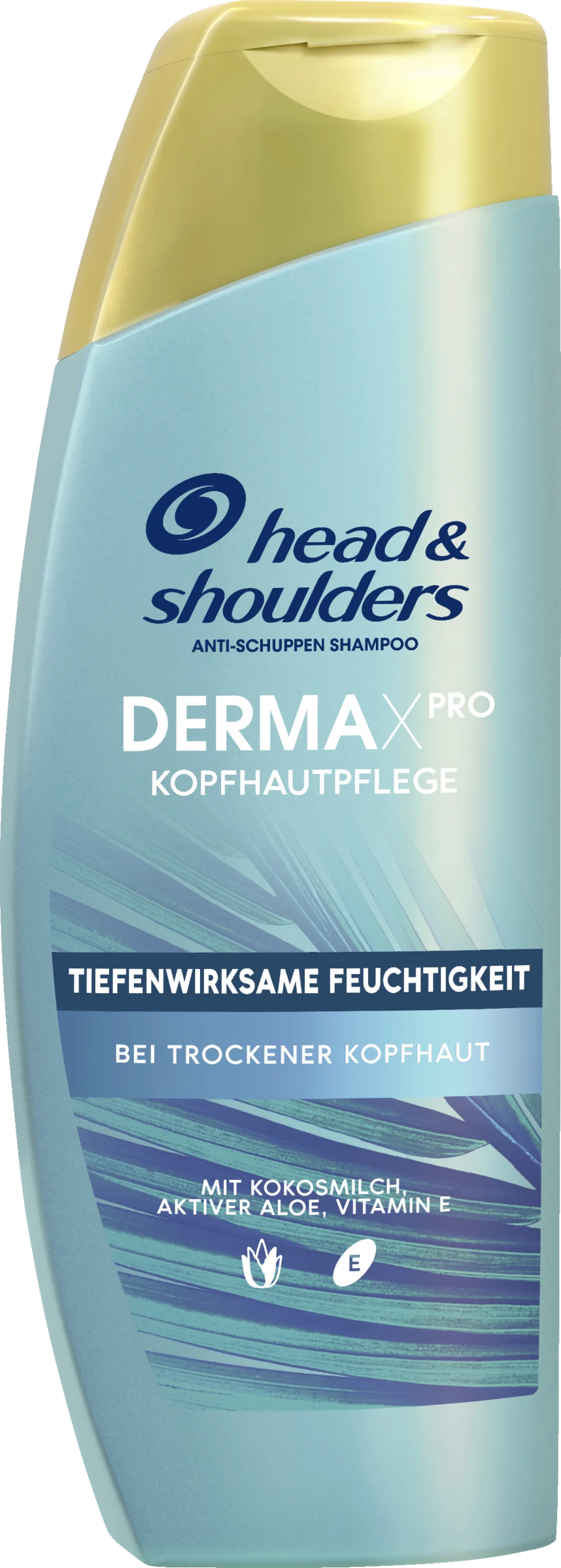 Wussten Sie, dass trockene Kopfhaut mehr als nur Feuchtigkeit benötigt? Head & Shoulders DERMAXPRO Tiefenwirksame Feuchtigkeit Anti-Schuppen Shampoo & Kopfhautpflege hilft, die natürliche Hautbarriere zu stärken, und stellt die natürliche Balance Ihrer Kopfhaut wieder her. Unsere feuchtigkeitsspendende Formel ist mit den hautpflegenden Substanzen Kokosmilch, aktiver Aloe und Vitamin E angereichert und basiert auf dem klinisch getesteten Wirkstoff Pirocton Olamin. Das Ergebnis? Eine mit Feuchtigkeit versorgte, schuppenfreie* Kopfhaut. *sichtbare Schuppen, bei regelmäßiger Anwendung.