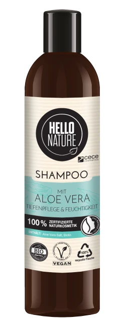 Spüren Sie die einmalige Wirkung von Hello Nature mit Aloe Vera. In dieser ungewöhnlichen Pflanze steckt eine Vielfalt an Vitaminen, Mineralien und Aminosäuren, die Ihr Haar hervorragend pflegen. Spenden Sie Ihrem Haar Feuchtigkeit.