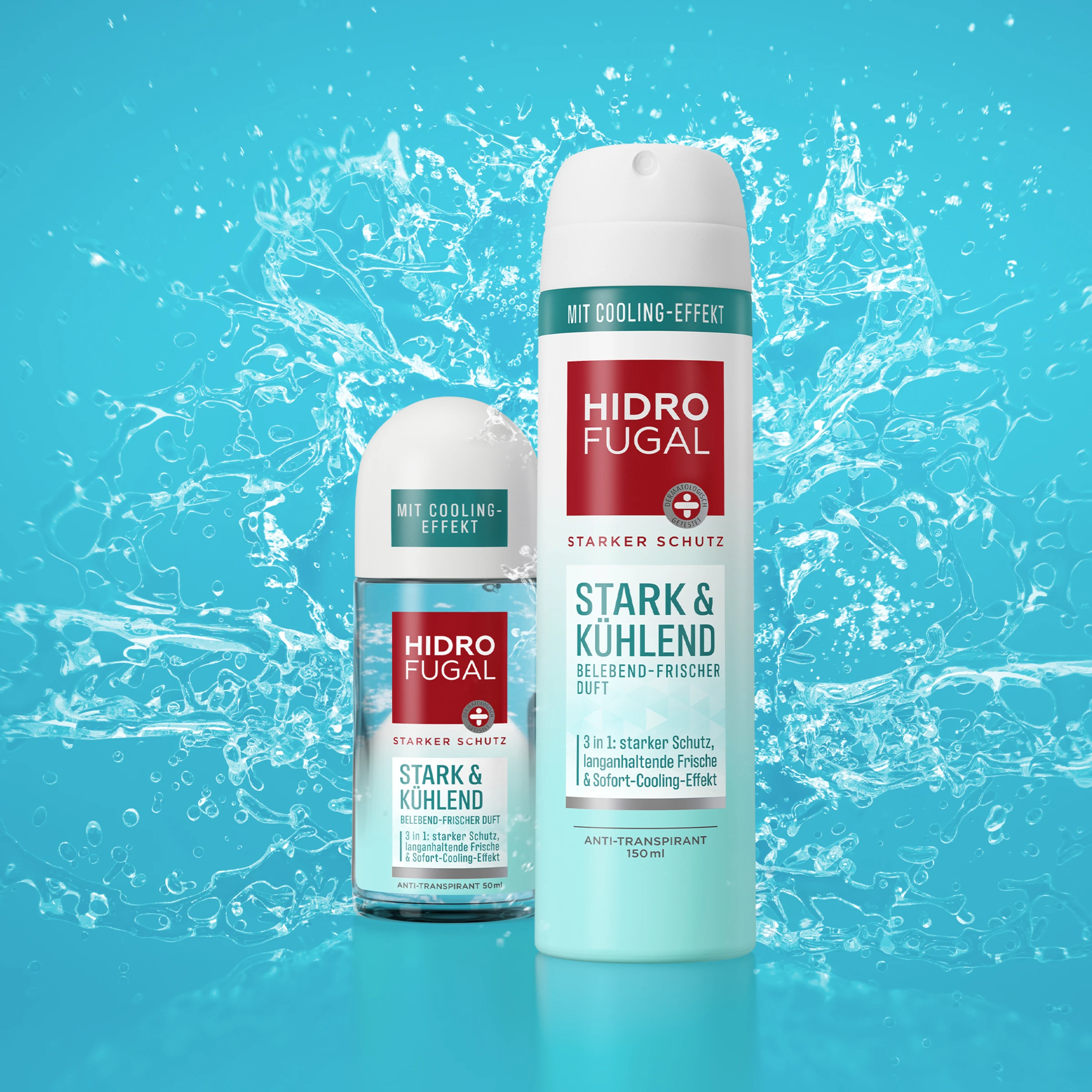 Stark wie immer, frisch wie nie: der Hidrofugal Deo STARK & KÜHLEND Roll-on mit dem 3 in 1 Effekt kombiniert starken Schutz gegen Achselnässe, langanhaltendes Frischegefühl und angenehmen Cooling-Effekt.