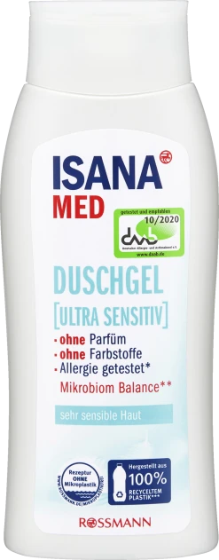 Die Isana med Dusche ultra sensitiv ist speziell auf die Bedürfnisse sehr sensibler und empfindlicher Haut abgestimmt. Die pflegende Formel mit feuchtigkeitsspendendem Glycerin und einem hautverwandten Pflegelipid reinigt die Haut besonders schonend.