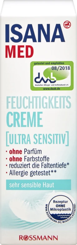 Die sehr gut hautverträgliche ISANA MED FEUCHTIGKEITSCREME mit Q10 wurde speziell für sehr empfindliche und sensible Haut entwickelt. Sie reduziert die Faltentiefe nachweislich bei regelmäßiger Anwendung.*