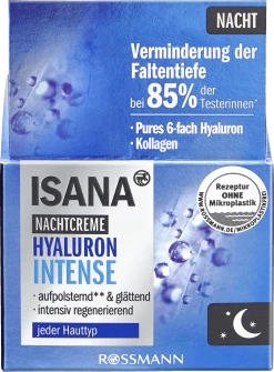 Die Hyaluron Intense Nachtcreme hydratisiert die Haut sofort, mildert Falten und unterstützt die hauteigene Regeneration über Nacht. Marines Kollagen speichert Feuchtigkeit in der Haut und nimmt dabei bis zu 10-fach an Volumen zu.