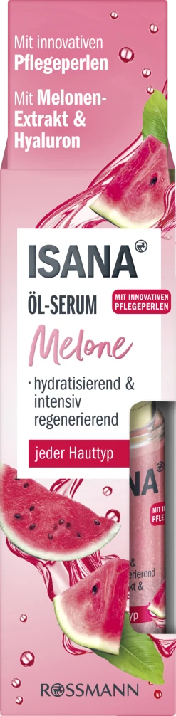 Das ISANA ÖL-SERUM MELONE mit innovativen Pflegeperlen, vereint die Frische eines leichten Serums mit feinen Beauty-Ölperlen. Die neue Mikrofluid-Technologie ermöglicht eine wirkungsvolle Schönheitspflege, bei der die Haut mit erfrischender Feuchtigkeit und intensiver Pflege versorgt wird. Ein Beauty Moment der Extraklasse!