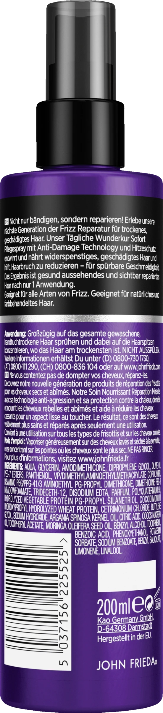Großzügig auf das gesamte gewaschene, handtuchtrockene Haar sprühen. Nicht ausspülen.