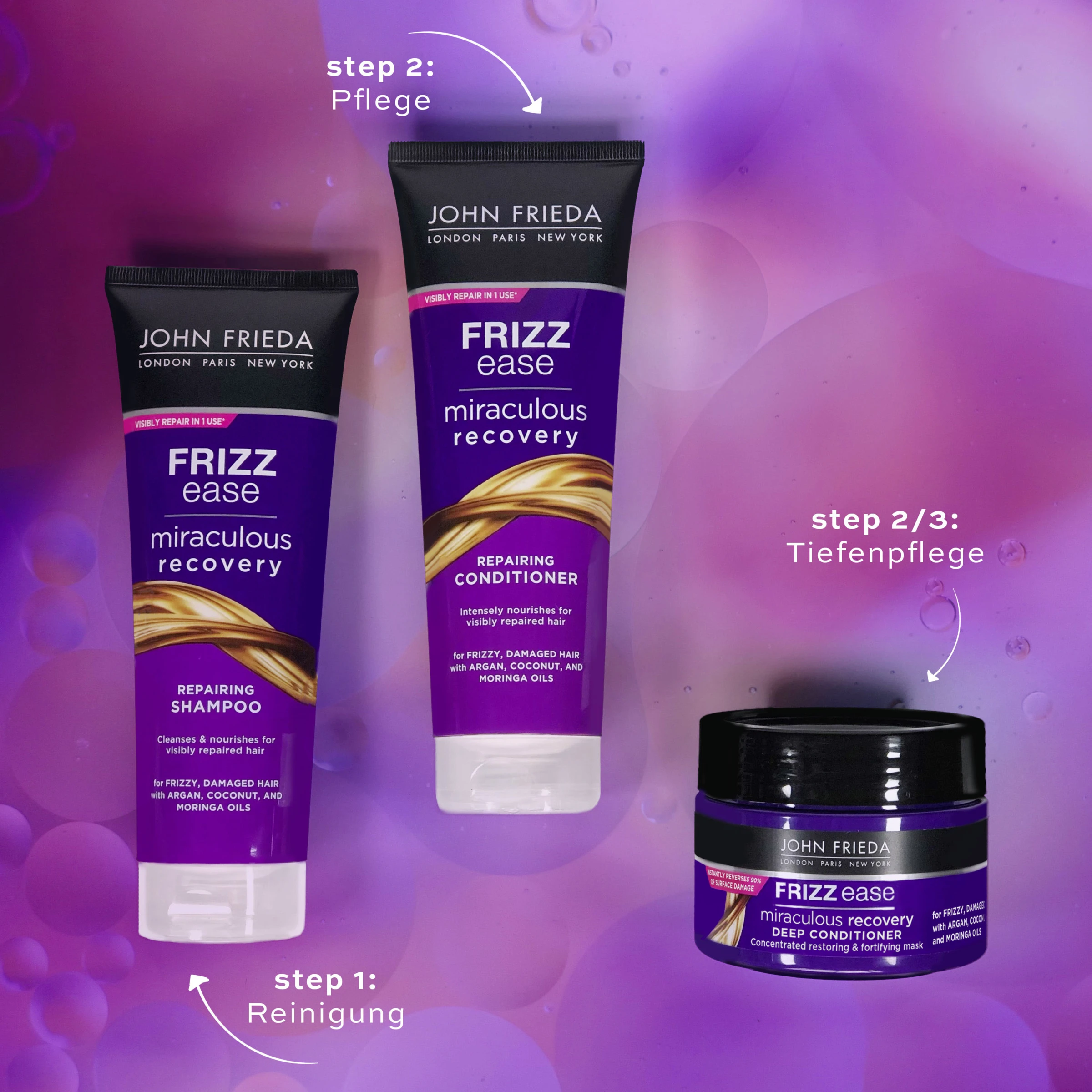 Nähre und repariere trockenes, hitzegeschädigtes, widerspenstiges Haar sicht- und fühlbar. Das Wunder-Reparatur Shampoo, mit Amino-Repair-Komplex, stellt die Widerstandskraft wieder her, für sichtbar gesundes Haar.