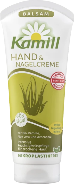 Die intensive Handpflege für trockene Haut bietet Schutz, Regeneration und ist besonders feuchtigkeitsspendend. Sie enthält Bio-Kamille*, Bisabolol, Aloe Vera und Avocadoöl.