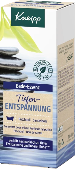 Die Kneipp® Bade-Essenz Tiefenentspannung mit natürlichem ätherischem Patchouliöl und wertvollem Sandelholzextrakt führt Sie in eine tiefe Entspannung und lässt Ihren Geist zur Ruhe kommen. Verhilft nachweislich zu tiefer Entspannung und innerer Ruhe*. Patchouli löst Anspannungen und hilft bei innerer Unruhe. Sandelholz ist für seine ausgleichende und entspannende Wirkung bekannt. Im Zusammenspiel mit der wohltuenden Wirkung warmen Wassers entfalten die ätherischen Öle in ihrer Kombination ihre natürliche Duftwirkung.
