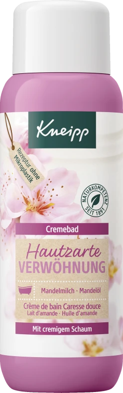 Gönnen Sie sich und Ihrer Haut etwas Besonderes mit dem Kneipp® Cremebad Hautzarte Verwöhnung. Hochwertiger Mandelmilchextrakt und natürliches reichhaltiges Mandelöl schützen die Haut vor dem Austrocknen und schenken ein zartes Hautgefühl.