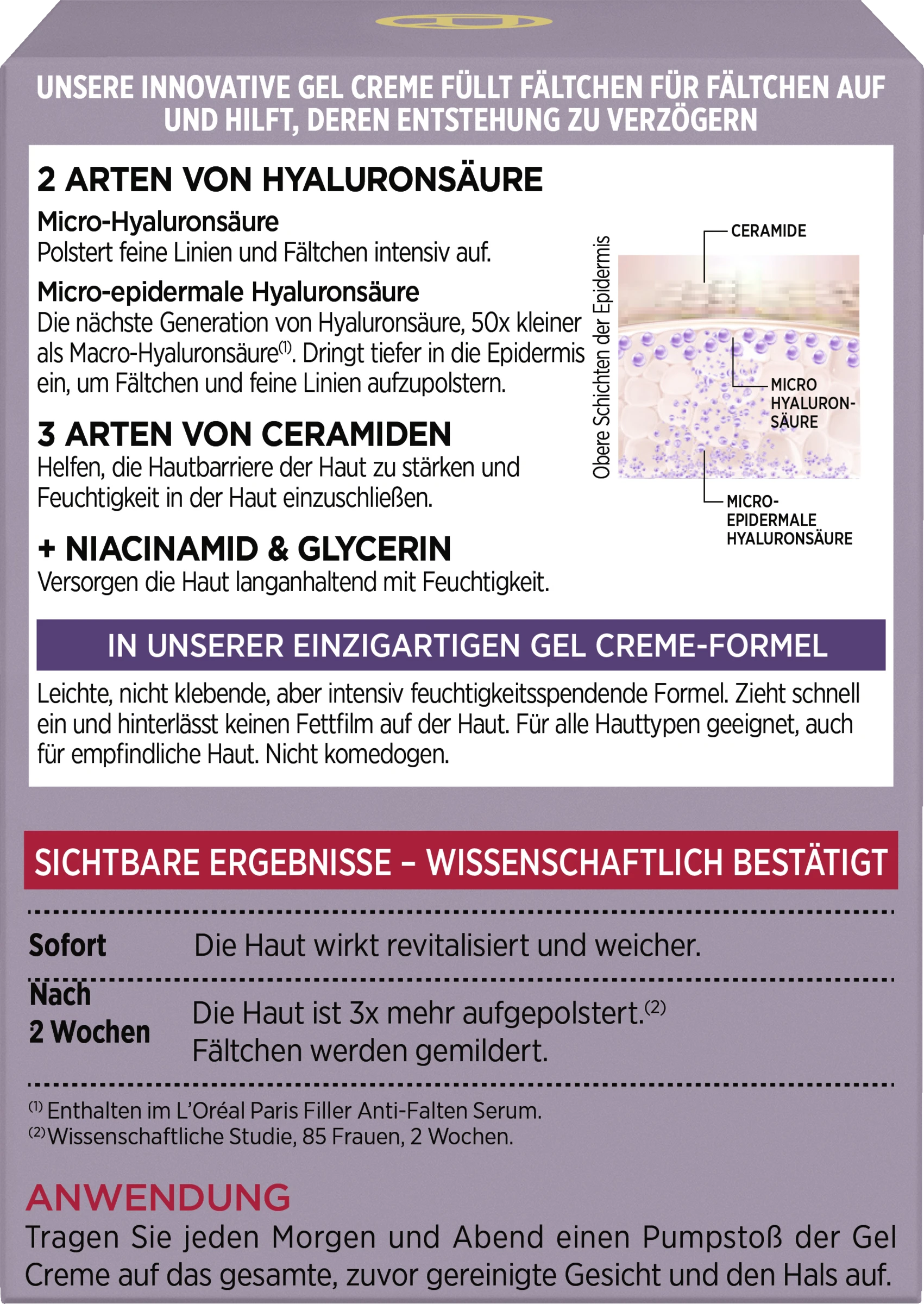 Tragen Sie jeden Morgen und Abend einen Pumpstoß der Gel Creme auf das gesamte, zuvor gereinigte Gesicht und den Hals auf.