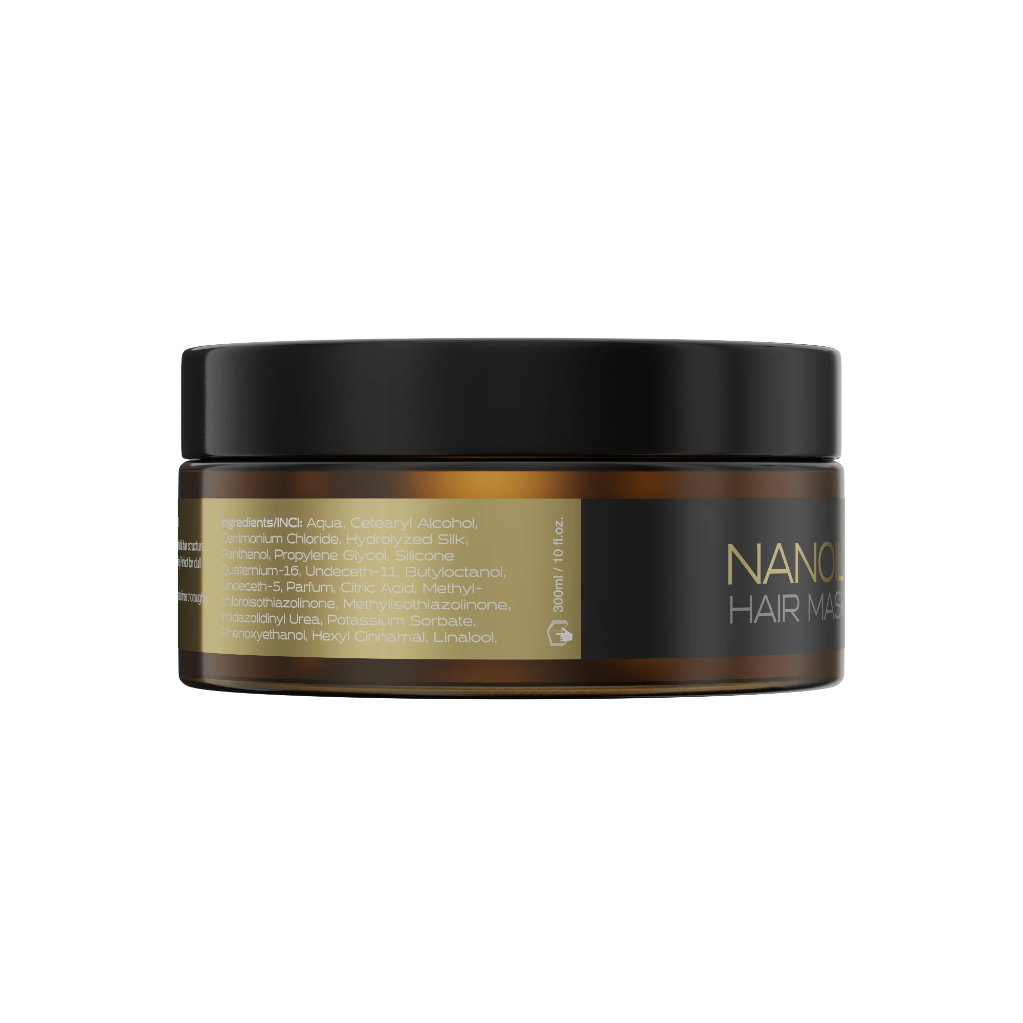 NANOIL Haarmaske mit flüssiger Seide – Kraft der Seidenproteine für Ihre wunderschöne FrisurDie glättende Haarmaske von Nanoil enthält hochwertige Inhaltsstoffe, die Ihren Haaren eine professionelle Kur zu Hause sichern: