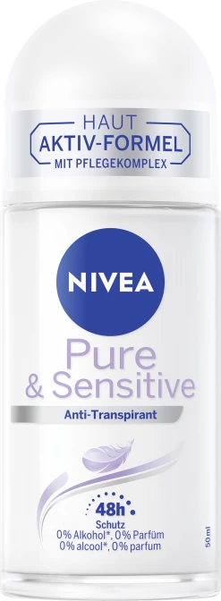 NIVEA Pure & Sensitive wurde speziell auf die Bedürfnisse sensibler Haut entwickelt. Das Deo schützt 48 Stunden effektiv vor Achselnässe und Körpergeruch – ohne die Haut zu reizen. Die wirksame Formel ist frei von Alkohol, Parfüm, Farb- und Konservierungsstoffen. Die optimale Kombination aus NIVEA Pflege und wirksamem Schutz vor Geruch sorgt für ein angenehmes Hautgefühl – den ganzen Tag.