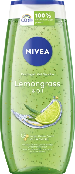 Erleben Sie ein geschmeidiges Hautgefühl mit dem NIVEA Lemongrass & Oil Duschgel. Spüren Sie, wie das erfrischende Duschgel mit Pflegeöl-Perlen, Vitamin C & E und wervollen Ölen Ihre Haut sanft unter der Dusche reinigt und pflegt. Genießen Sie den samtweichen Schaum und den revitalisierenden Zitronengras-Duft. Diese Pflegedusche tut nicht nur Ihrer Haut, sondern auch der Umwelt etwas Gutes: Die Flasche besteht zu 96% aus Recycling-Material, abgesehen von der Verschlusskappe und der Label. Außerdem enthält die Formel kein Mikroplastik und ist zu 99% biologisch abbaubar. Verwandeln Sie jedes Duscherlebnis in einen verwöhnenden Pflegemoment mit NIVEA: Lemongrass & Oil Pflegedusche.
