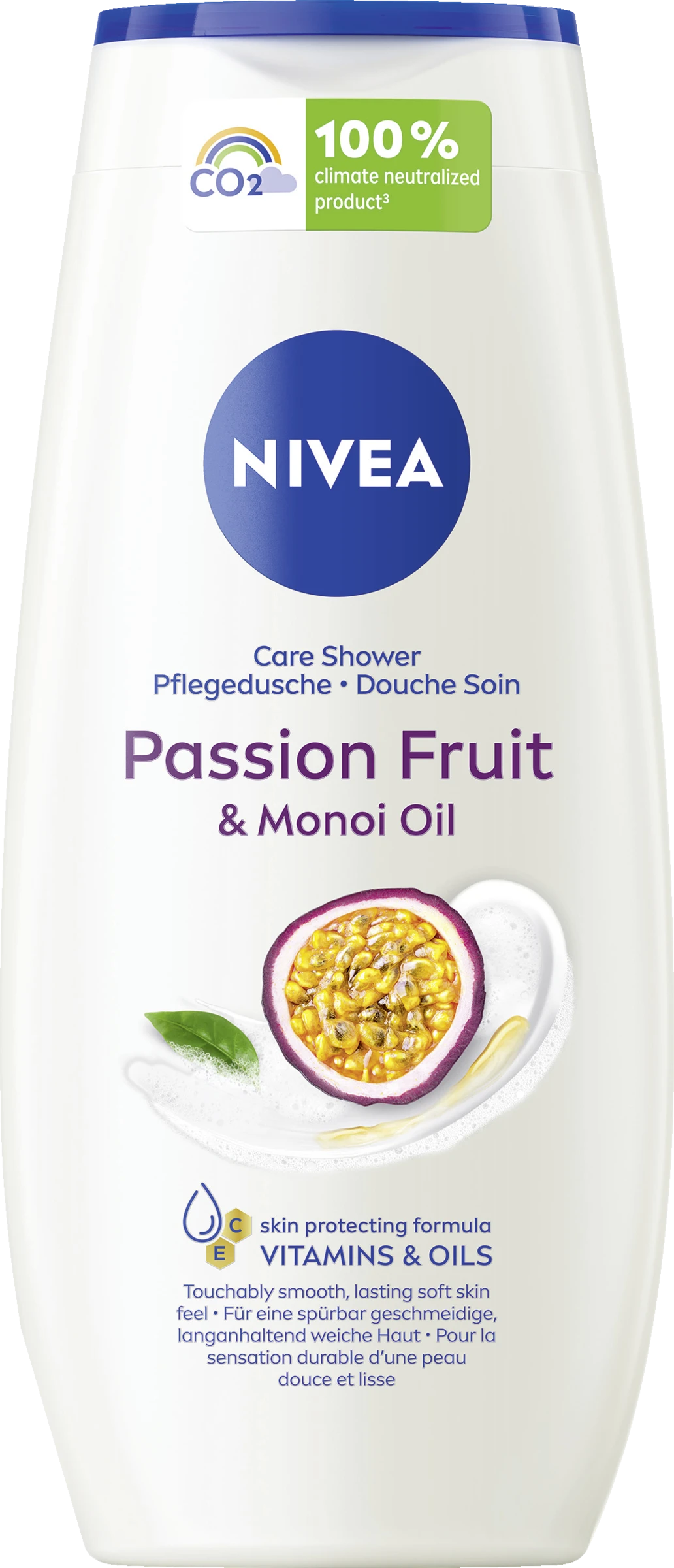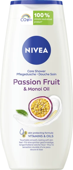 Entdecken Sie ein verwöhnendes Duscherlebnis mit dem cremigen NIVEA Passion Fruit Duschgel. Spüren Sie, wie die seidige Cremedusche Ihre Haut sanft reinigt und ihr dank der Formel mit wertvollem Ölen, Monoi-Öl und Vitamin C & E sanfte Pflege spendet. Genießen Sie den samtweichen Schaum auf Ihrer Haut und den zarten Passion Fruit-Duft, der Ihre Sinne verwöhnt. Dieses Duschgel tut sowohl Ihrer Haut als auch der Umwelt etwas Gutes. Die Formel enthält keine festen Mikroplastik-Partikel und ist zu 98% biologisch abbaubar. Außerdem besteht die Flasche aus 97% Recycling-Material, ohne Label und Verschlusskappe. Für ein geschmeidiges Hautgefühl: NIVEA Pflegedusche Passion Fruit.