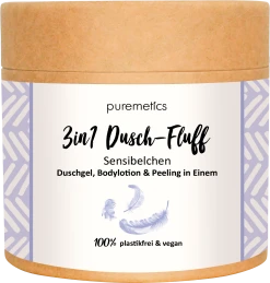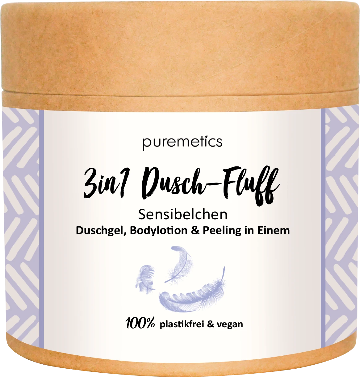 Am besten entnimmst du vor dem Duschen etwas Dusch-Fluff mit einem Löffel oder Schälchen für den Nassraum.