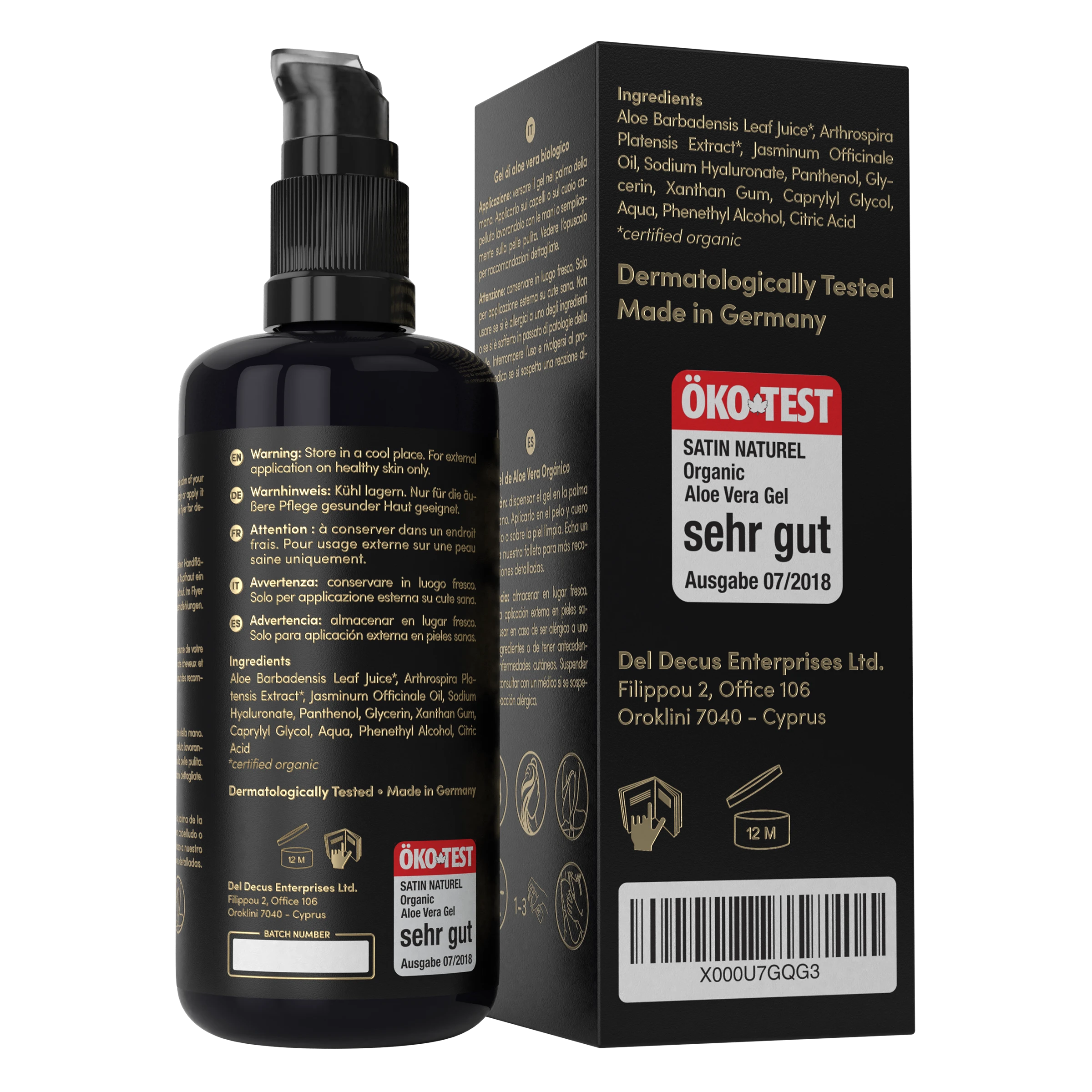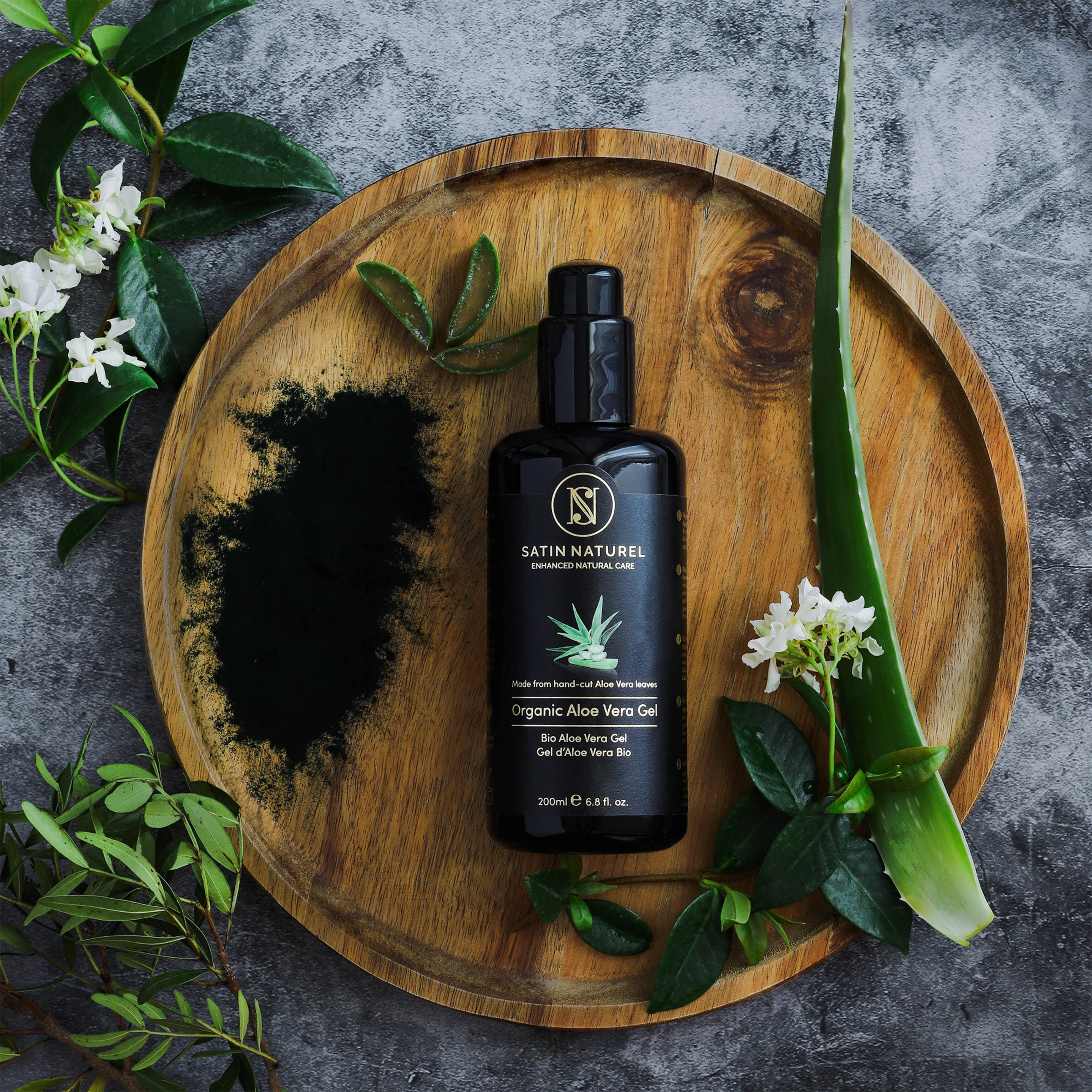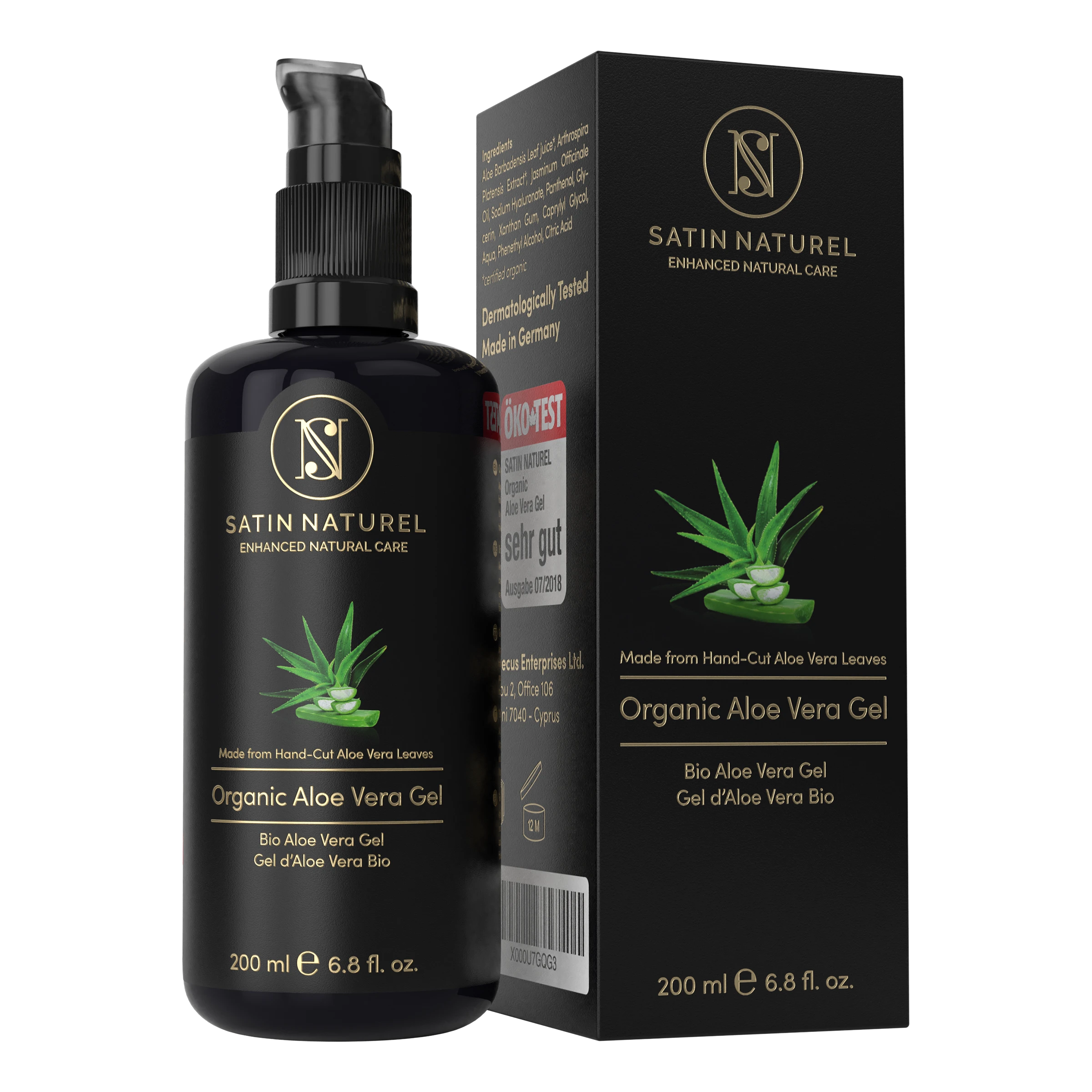 Bio Aloe Vera Direktsaft (Aloe Barbadensis), Bio Spirulina Extrakt (Arthrospira Platensis), Jasminum Officinale (Jasmin) Öl, Natriumhyaluronat (Hyaluronsäure), Panthenol, Glycerin, Xanthan, Caprylyl Glycol, Aqua, Phenethylalkohol, Zitronensäure.