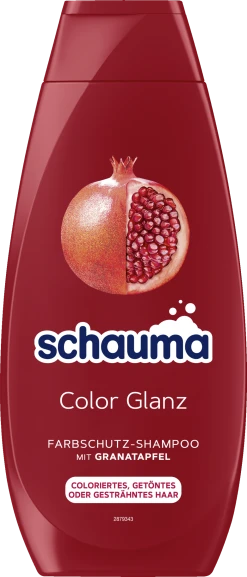 Hi! Ich bin dein Shampoo & so pflege ich dein Haar: Ich pflege dein coloriertes Haar und sorge für extra langen Farbschutz und langanhaltenden Glanz. Meine Formel mit Granatapfel-Extrakt ist vegan*. Ich bin recycelt: Mein Flaschenkörper** besteht zu 50% aus recyceltem Plastik und mein Deckel besteht zu 25% aus recyceltem Plastik. Denk daran, mich zu recyceln! Dazu den Deckel vom Flaschenkörper trennen und beides im Plastikmüll entsorgen.***