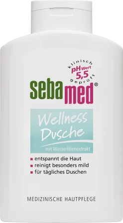 sebamed Wellness Dusche mit ihrem Pflegekomplex aus Wasserlilienextrakt und Allantoin:
