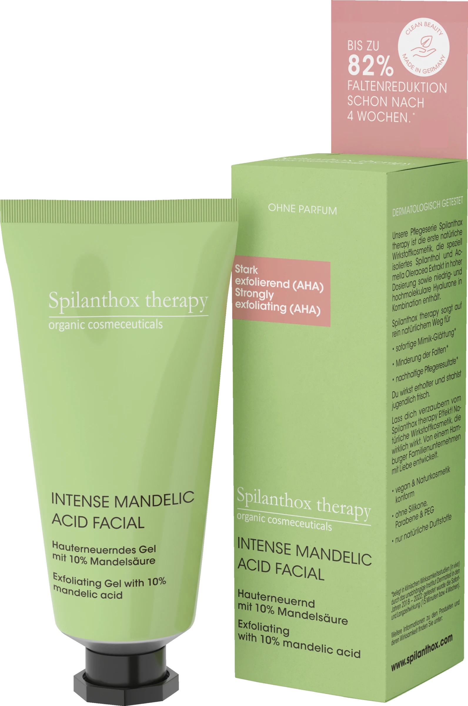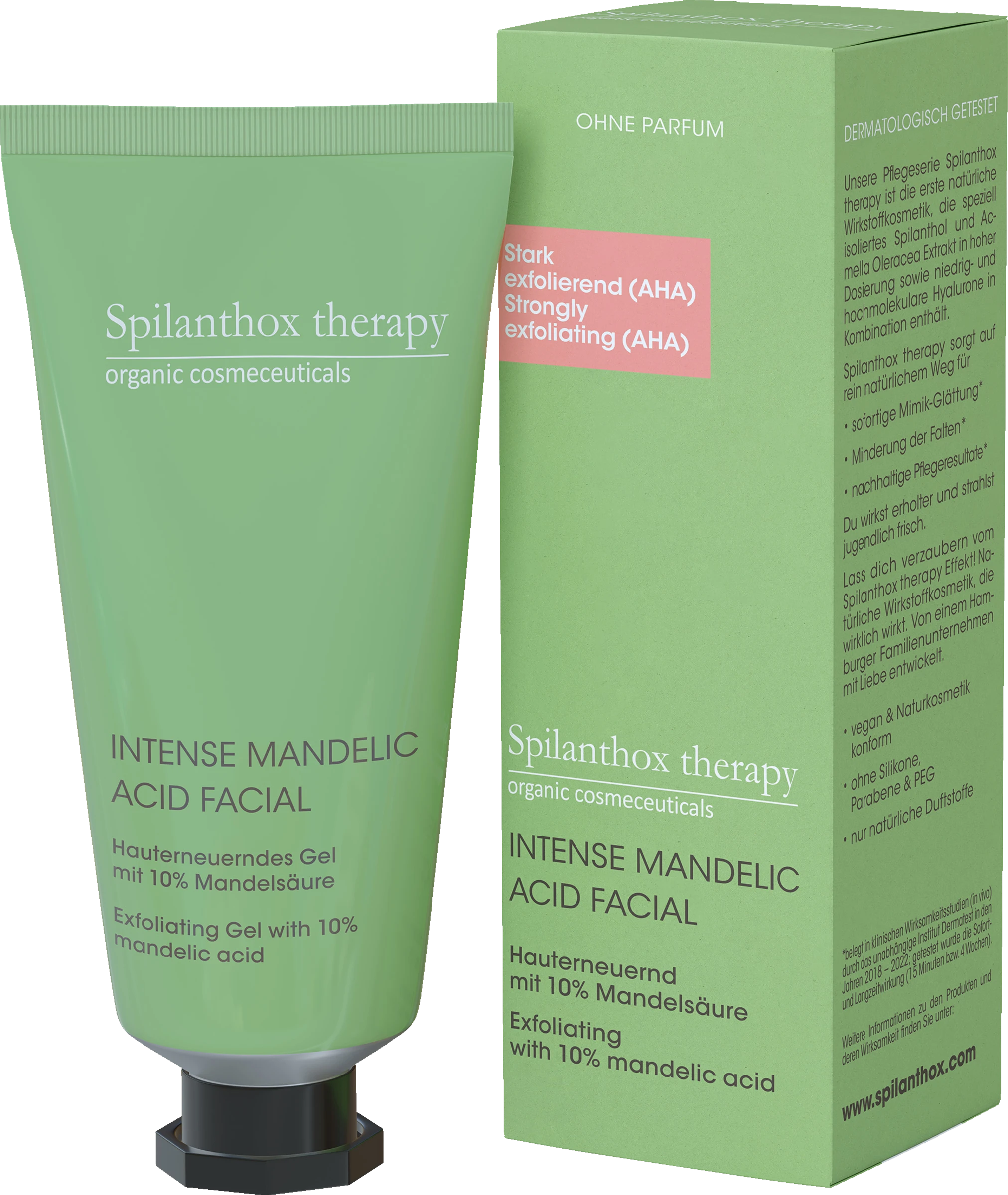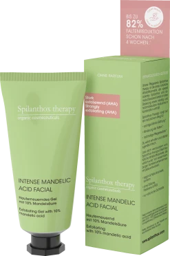 Stark exfolierend (AHA) für ebenmäßige Haut. Löst Verhornungen an der Hautoberfläche. Stimuliert die Kollagen-Synthese und aktiviert die Zellregenerierung, sorgt für einen gleichmäßigen Hautto. Kann Fältchen und Linien minimieren. Der niedrige PH Wert sorgt für einen maximalen Effektohne Parfum. Hauterneuerndes Gel mit 10% Mandelsäure.