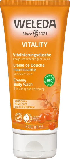 Die Vitalisierungsdusche Sanddorn stimuliert die Sinne mit einer feinen Duftkomposition aus sonnenverwöhnter Orange, Mandarine und Grapefruit. Die besänftigende Mandarinenote und die anregenden Grapefruitkomponente sorgen für einen natürlichen Gute-Laune-Duft, der schon morgens für ausgeglichene Stimmung sorgt.