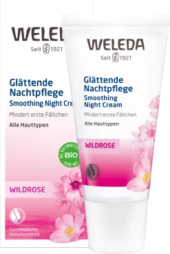 Die Wildrose Glättende Nachtpflege regeneriert die Haut, stärkt den Hautschutzmantel und mindert erste Fältchen.